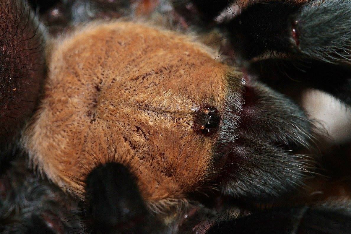 I first became aware of albiceps, discovered in 1903, when it went under the species name ruhnaui. In fact, the first specimen I received was sold as Brachypelmides ruhnaui. This species is the only Brachypelma that does not feature orange banding on the legs. The overall color is velvet black with a golden-yellow carapace and red hairs on the abdomen. This species was put into the Brachypelma genus in August of 2018.