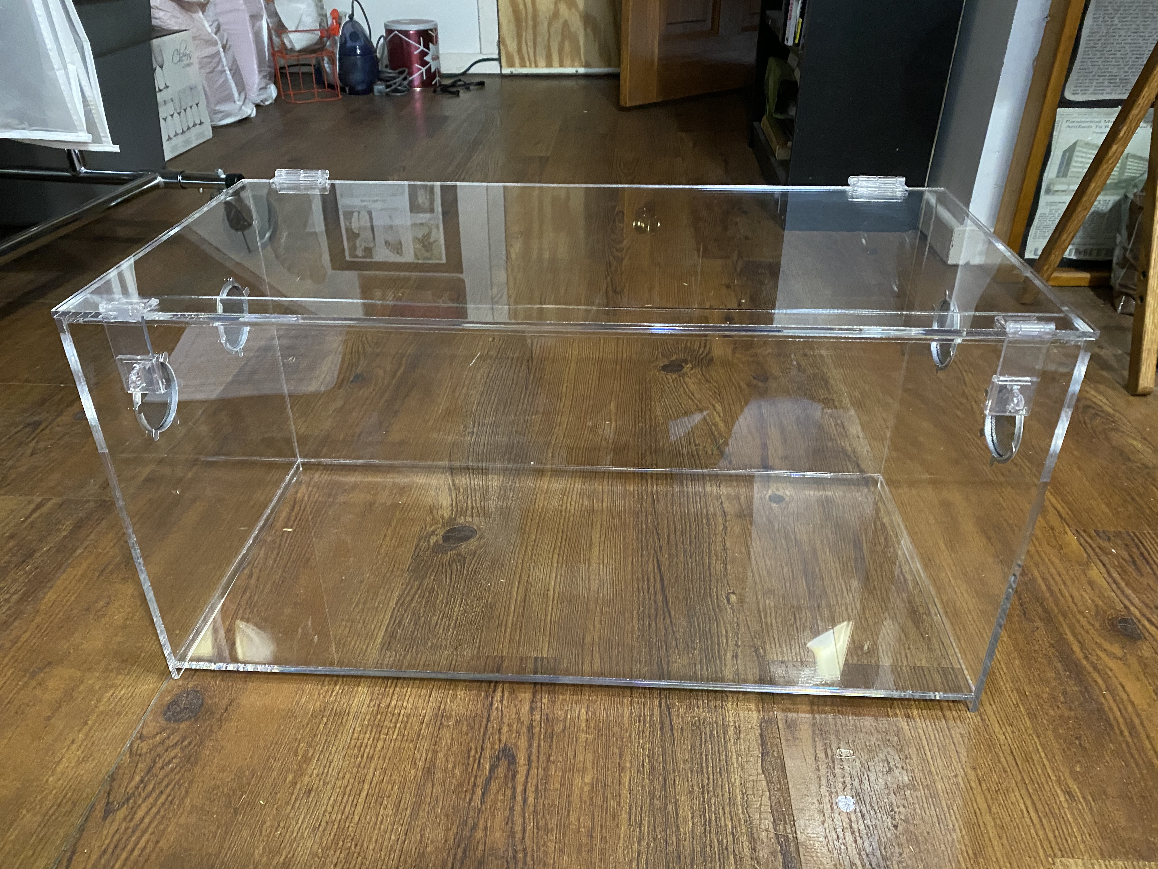 Everything about this enclosure was perfect. The acrylic is crystal clear, and everything is made of quality parts. It is so clear in fact that after I set the enclosure up, I went to feed the tarantulas not realizing that the lid was down and dropped the crickets right onto the lid! I cannot recommend Lorex Plastics enough. Great turnaround time and a high-quality product. If you really want to showcase some of your tarantulas, this is a great way to go.