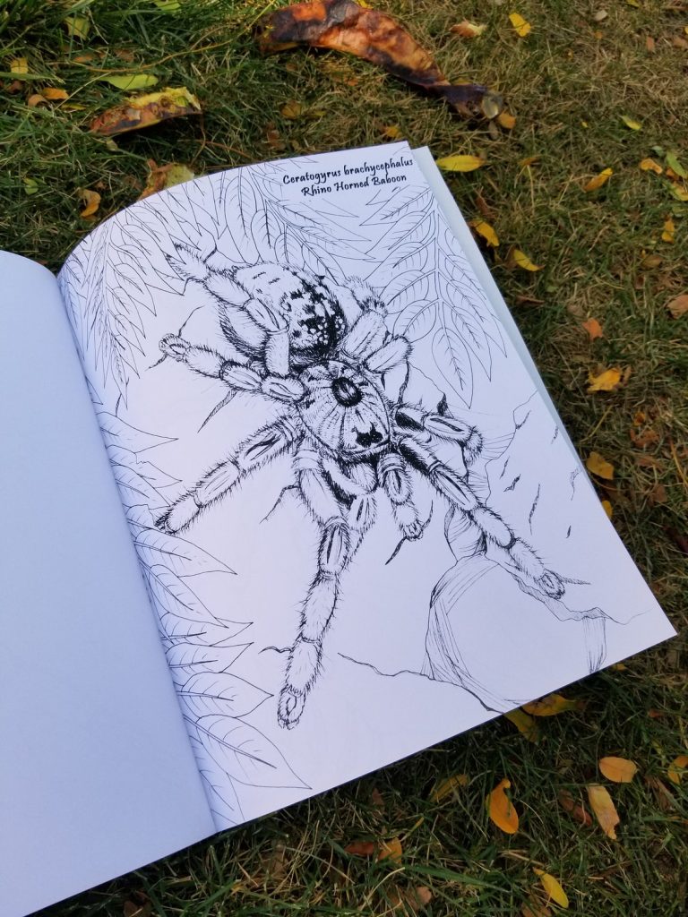 It never ceases to amaze me the wonderful things you can find on Etsy. Being a tarantula enthusiast, it is one topic I find myself searching quite often. Recently I came across artist Laura Airey Le and her Etsy store GrayGhostCreations. The first thing that drew me to her store was her tarantula art prints; then I found her “The Old World Tarantula Coloring Book.”