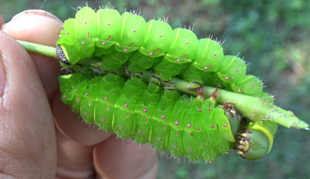 Thank you so much for this interesting and informative article. As a teenager I came in contact with a big, green caterpillar with red and white racing stripes and learned the hard way about those little “Christmas trees” that adorn it’s body; but until now I didn’t know it was an Io caterpillar.