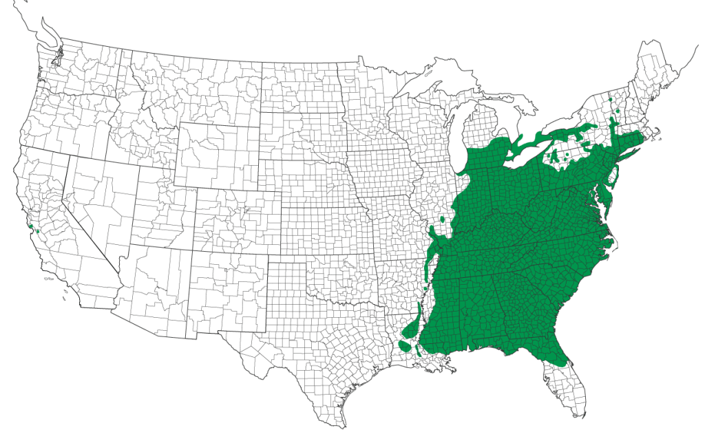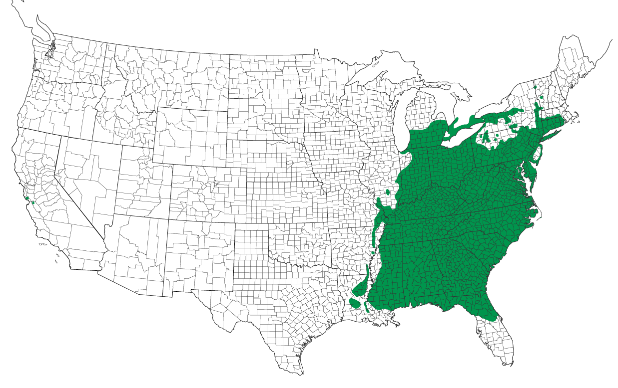 The range of Callosamia angulifera extends across eastern North America, from Massachusetts westward through central New York, southern Ontario, and southern Michigan to central Illinois. Its southern distribution reaches down to the Florida panhandle and Mississippi. This distribution closely mirrors that of its primary host plant, the tulip tree (Liriodendron tulipifera), a majestic hardwood found in deciduous woodlands. While primarily associated with mesic to dry-mesic hardwood forests, particularly those with rich soils favored by tulip trees, the moth can also be found in floodplains and even suburban areas where its host plant thrives.