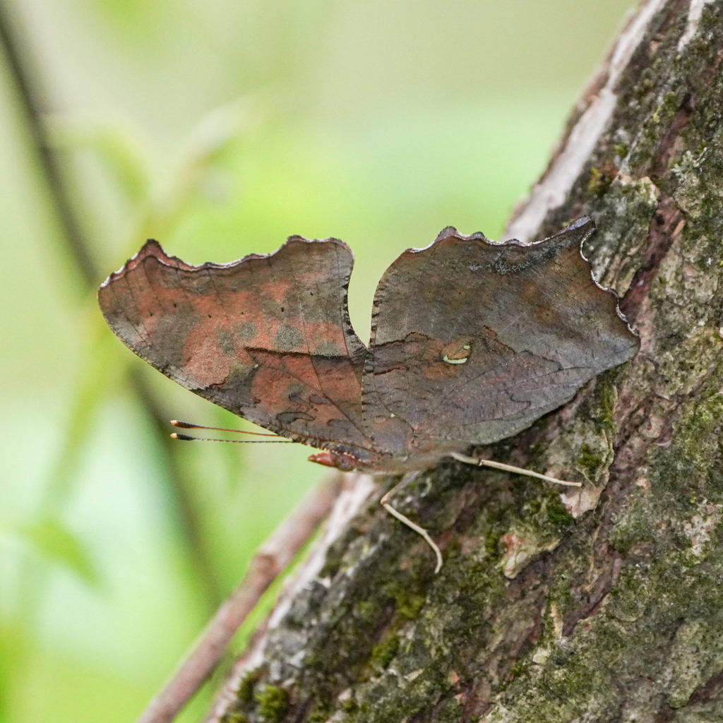 Question mark butterflies are known for their relatively fast and erratic flight. Males are often territorial, perching in sunny spots and aggressively defending their chosen areas against other butterflies. Their scalloped wing edges provide excellent camouflage when they rest with their wings closed, resembling dead leaves or bark.