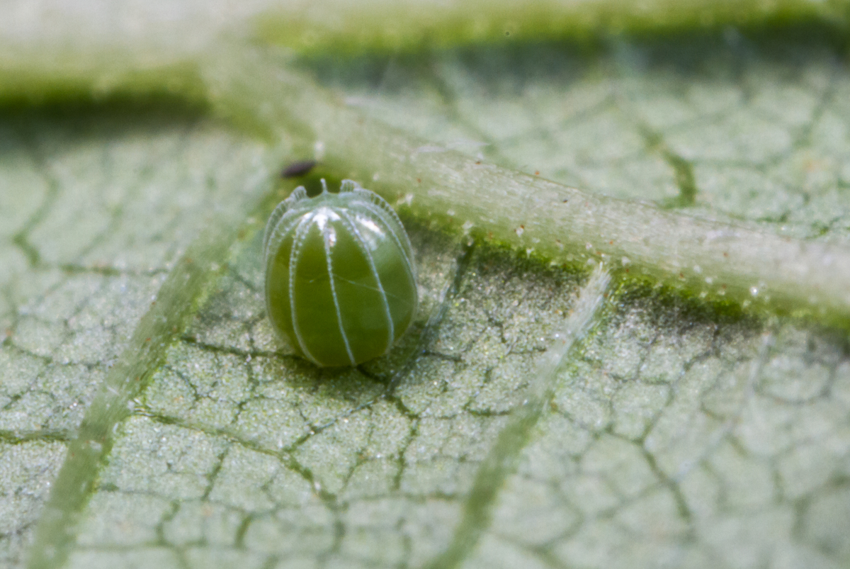 - Egg: Females lay small, greenish eggs singly or in short stacks beneath the leaves of their host plants. The eggs are often ribbed and barrel-shaped.