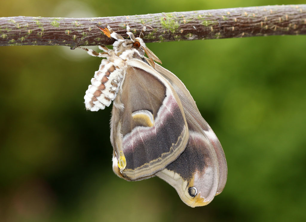 - Adult: The adult moths emerge with their impressive wings and characteristic markings. Like other members of the Saturniidae family, the adult Ailanthus silkmoth lacks functional mouthparts and does not feed. Their primary purpose is reproduction. Adult males are attracted to females by pheromones, and after mating, the females lay eggs, continuing the cycle.