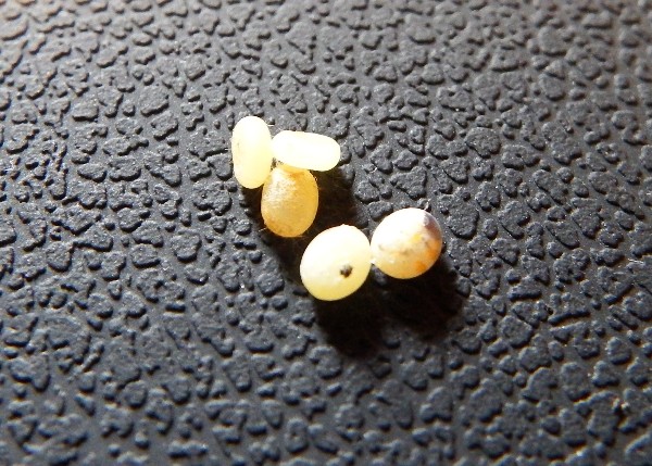 - Egg: Females lay large, flattened, yellowish-white eggs singly or in small clusters on the upper and lower surfaces of host plant leaves.