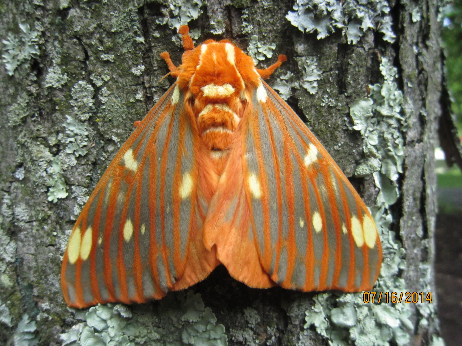 While the regal moth is broadly distributed, it has experienced significant local declines in various parts of its range, particularly in the northern and eastern regions. This decline is largely attributed to habitat loss, fragmentation, and degradation of mature deciduous forests. The widespread use of pesticides, particularly aerial spraying for gypsy moths and mosquitos, can also severely impact larval populations. Light pollution may also disorient nocturnal adults. Conservation efforts focused on preserving large, intact tracts of mature hardwood forests and reducing pesticide use are crucial for the long-term survival of this truly regal insect.