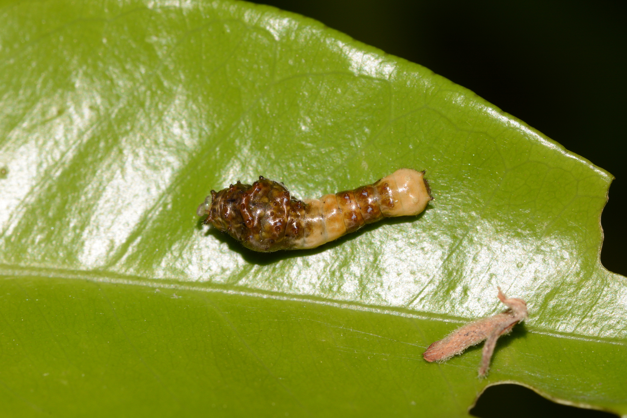 - Pupa (Chrysalis): Once fully grown, the larva forms a chrysalis that can be either brown or green, perfectly mimicking a twig or dead leaf. It is attached to a stem or branch of the host plant or a nearby surface by a silken girdle and a cremaster (a hooked pad at the posterior end). This excellent camouflage provides protection during its vulnerable pupal stage.