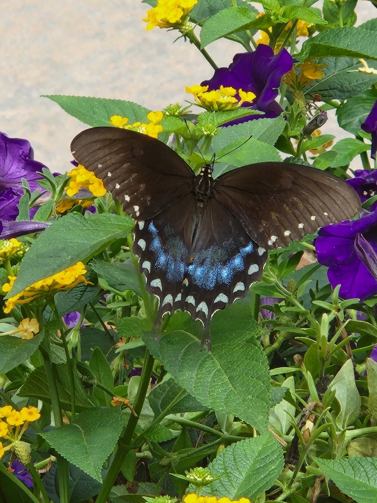 Spicebush swallowtails are known for their distinctive, gliding flight pattern, often soaring slowly through their woodland habitats before making rapid, erratic movements. Males frequently patrol areas near host plants in search of receptive females.