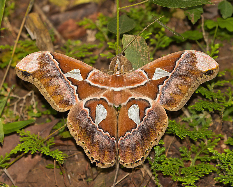 Rothschildia speculifer is a large moth, typically boasting a wingspan ranging from 4.7 to 6.7 inches (12 to 17 cm), placing it among the larger silkmoths of the Neotropics. Its wings are a rich tapestry of reddish-browns, olive tones, and sometimes a purplish hue, intricately patterned with darker lines and bands. The most characteristic features are the large, triangular or somewhat teardrop-shaped transparent “windows” (specula) found on all four wings. These clear, scale-less areas resemble panes of glass, allowing light to pass through and helping to break up the moth’s outline, potentially aiding in camouflage.