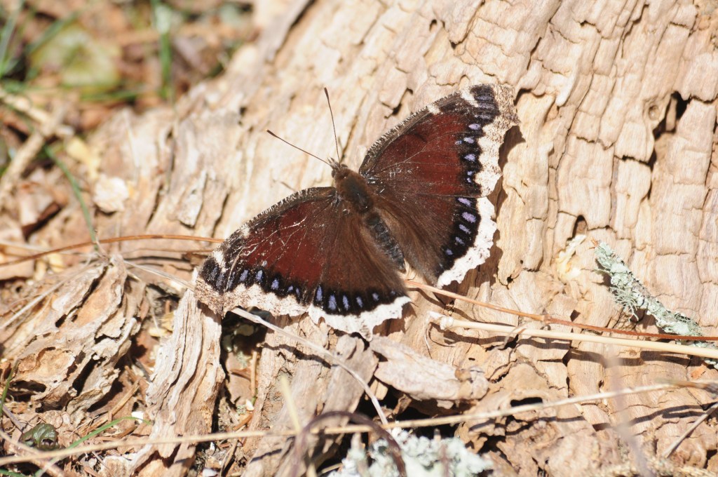 The mourning cloak is renowned for its powerful, direct flight. They are often seen flying low to the ground in wooded areas. Their ability to overwinter as adults means they are among the first butterflies to emerge in early spring, often before other insects are active.