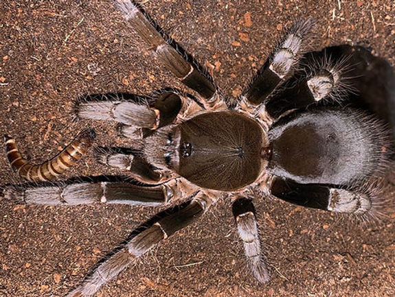 Sexual Dimorphism: While both sexes are large and similarly colored, mature males are generally more slender and may have slightly longer legs in proportion to their body compared to the bulkier females. Males also possess tibial hooks on their front legs, which are used to hold the female’s fangs during mating.