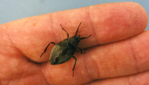 The giant water bug is a large insect, typically reaching lengths of 2 to 3 inches (5 to 7.5 cm). Its body is broad, oval, and flattened, which is an adaptation for its aquatic life. The coloration is generally a mottled brownish-tan to a darker brown, allowing it to blend in perfectly with the murky bottoms of ponds and streams.