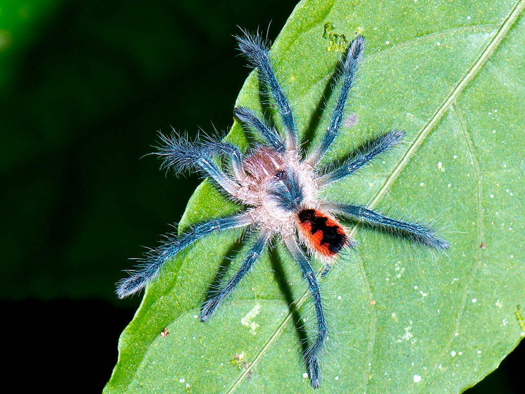 Female: Adult females and juvenile specimens of both sexes are a dark, uniform brown or black. Their bodies are covered in dense, short hairs, giving them a velvety texture. While less colorful than the males, their sheer size and commanding presence are a sight to behold. The legs are thick and robust, perfectly suited for their terrestrial lifestyle.