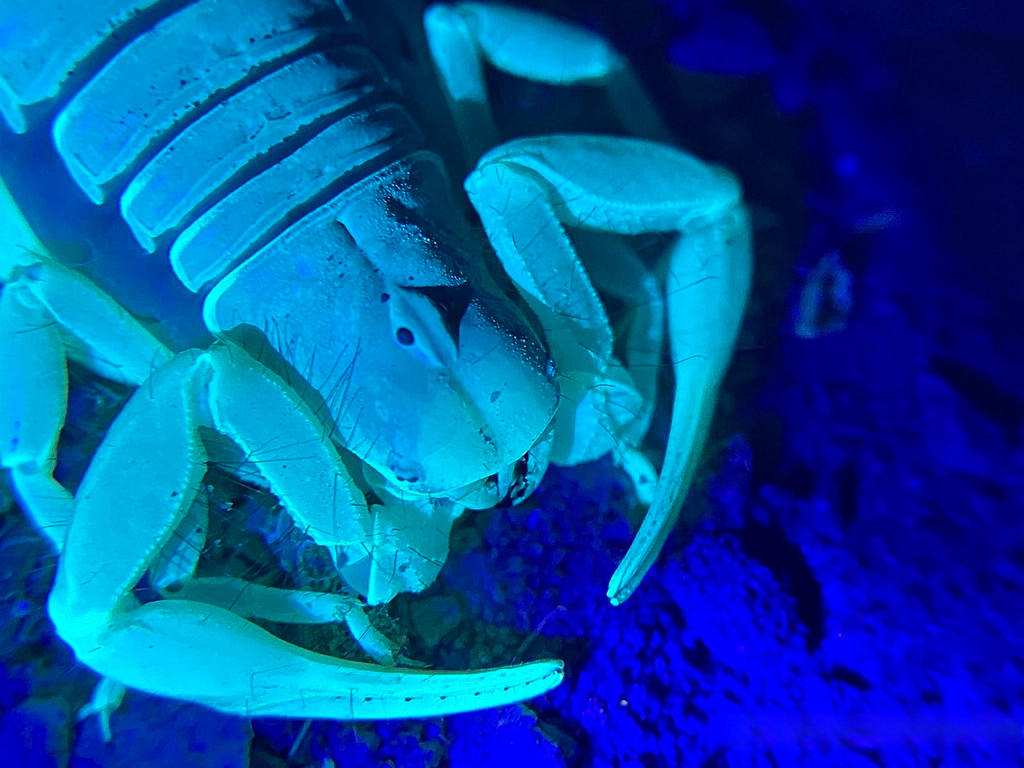 The species earns its “hairy” moniker from the dense coating of brown setae (sensory hairs) covering its tail, legs, and pedipalps. These hairs are not merely decorative; they serve as sophisticated sensory organs that detect minute vibrations in the air and soil, allowing the scorpion to locate prey or avoid predators in total darkness. Like most scorpions, Hadrurus arizonensis also possesses the remarkable ability to fluoresce a brilliant neon green or blue under ultraviolet (UV) light due to specific proteins in its cuticle.