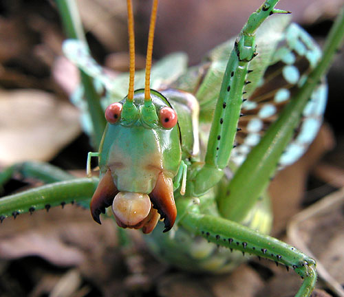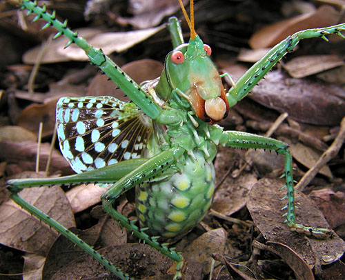 - Common Names: Greater Arid-Land Katydid, Red-Eyed Devil, Spiny-Legged Katydid.
