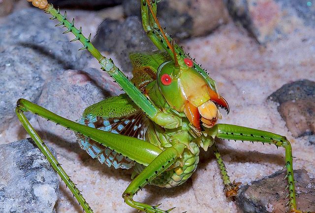 - Common Names: Greater Arid-Land Katydid, Red-Eyed Devil, Spiny-Legged Katydid.