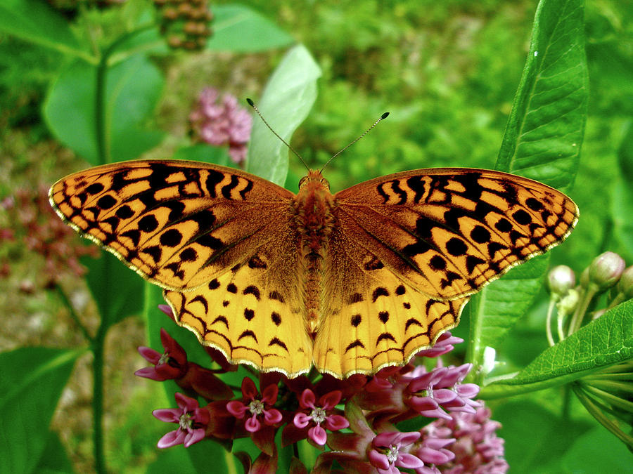 Gliding with powerful, buoyant flight through sun-drenched meadows, open woodlands, and vibrant flower gardens across much of North America is Speyeria cybele, commonly known as the Great Spangled Fritillary. This large and striking butterfly, adorned with a kaleidoscope of orange and black, and notably brilliant silver spots on its underside, is a cherished sight, embodying the beauty and vitality of its grassland and forest-edge habitats.
